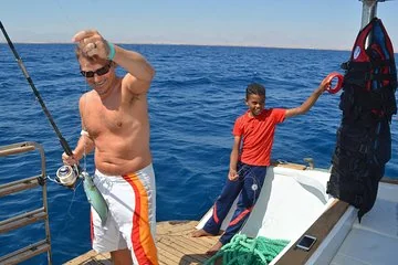Meet at Hurghada Marina, Gate 2, near the Marina Boulevard Café. Look for the crew in branded fishing shirts holding a 'Private Fishing Tour' sign.
