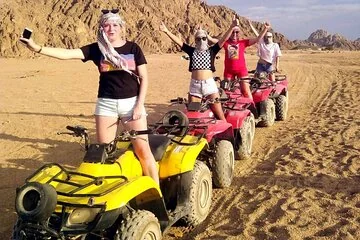 Ride powerful quad bikes across rolling dunes on a private desert adventure that blends adrenaline with culture. Follow your guide along sandy tracks, practice handling the bike on easier sections, then enjoy photo stops in wide open landscapes. Continue to a Bedouin-style camp t...